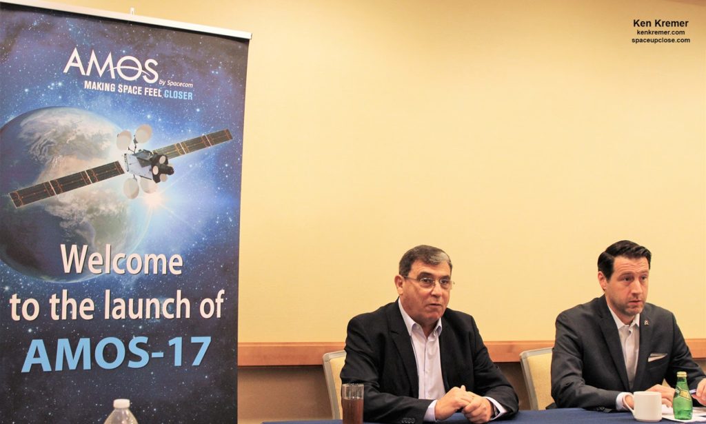 media briefing Aug. 2, 2019 with David Pollack, Spacecom CEO; and Chris Johnson, Boeing President, Satellite Systems International. Credit: Ken Kremer/kenkremer.com/spaceupclose.com |
