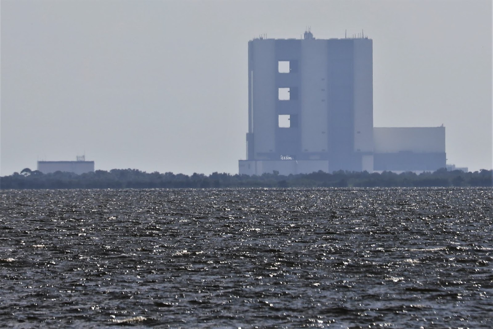 Eerie view of VAB on Sept. 11, 2019 after departure of ML for return to pad 39B. Credit: Ken Kremer